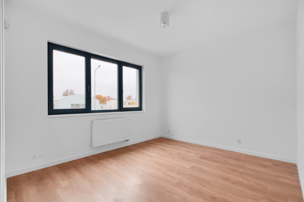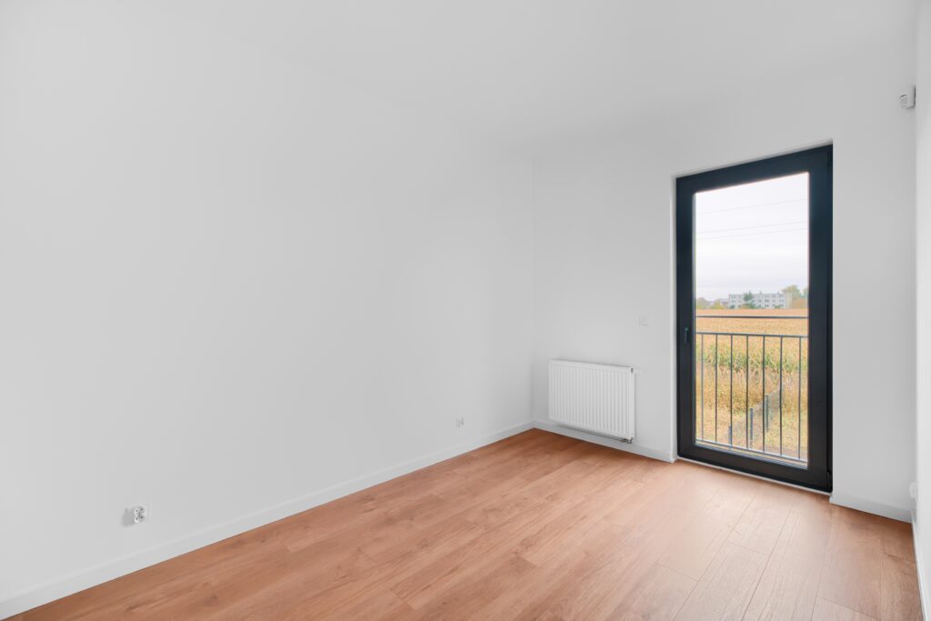 - sypialnia z oknem balkonowym – 8,59 m²