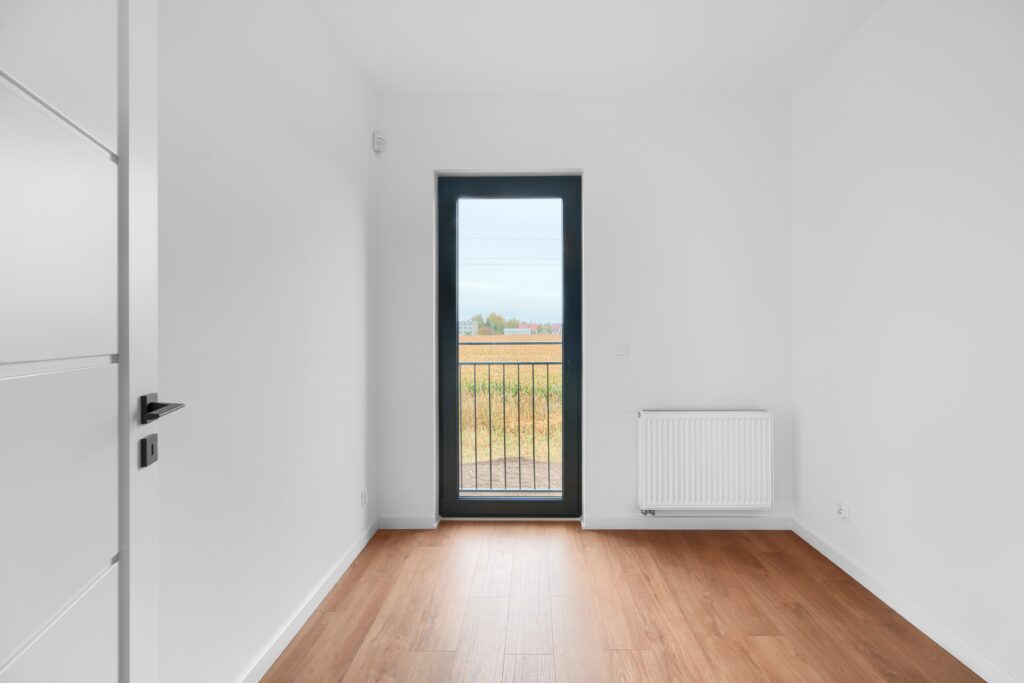 - sypialnia z oknem balkonowym – 8,59 m²